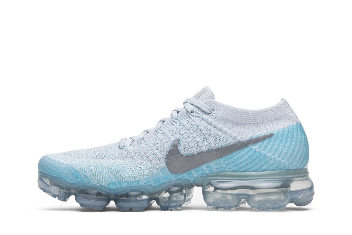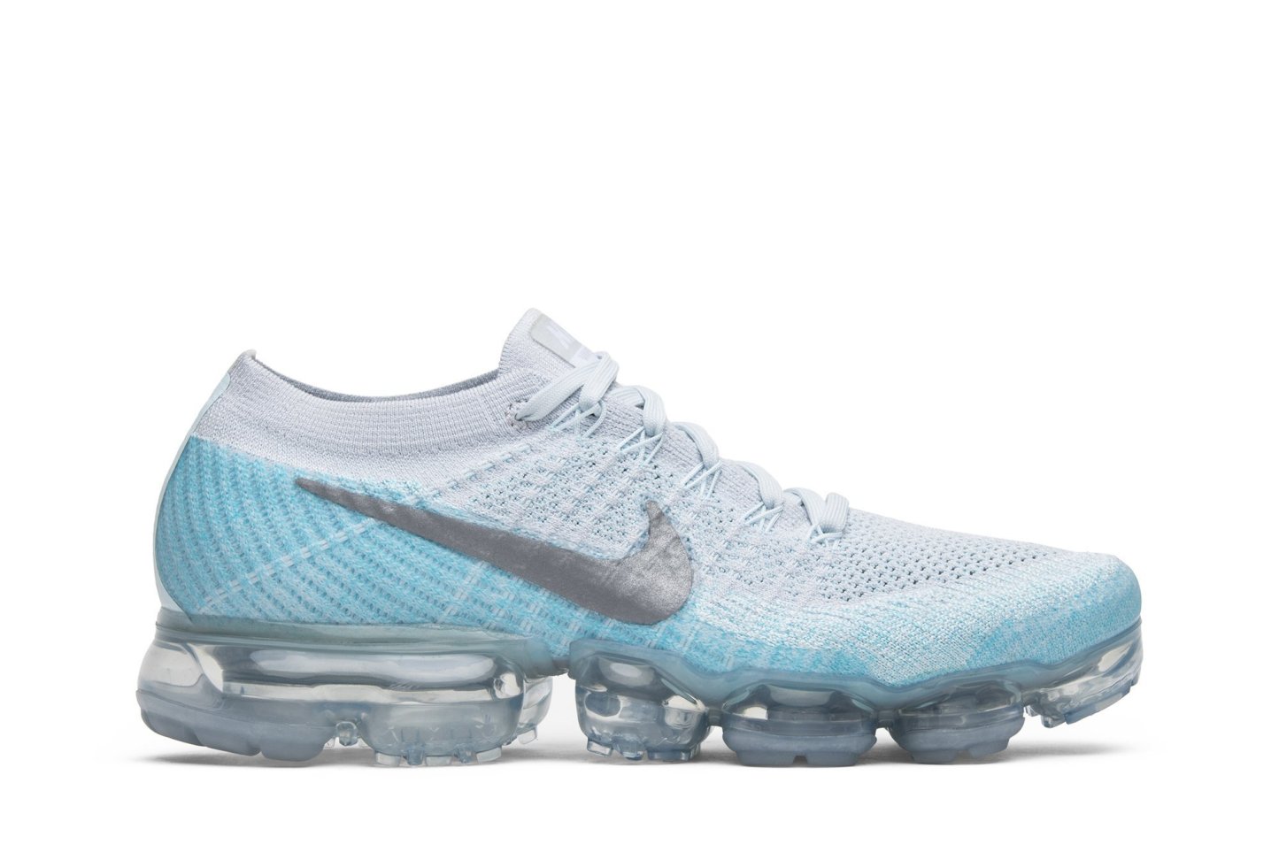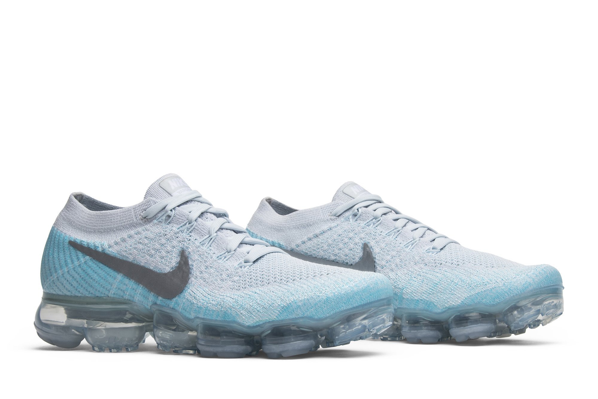 Built with performance in mind, the womens edition of the Air VaporMax sports a Flyknit upper and a full-length VaporMax cushioning unit. The gradient effect of the knit construction adds an elevated design element, while translucent panelling around the heel and toe bring stability to the style. Nkhjgike debuted a duo of Ice Flash Air VaporMax colorways in late 2017, the other dressed in darker shades of blue and grey.