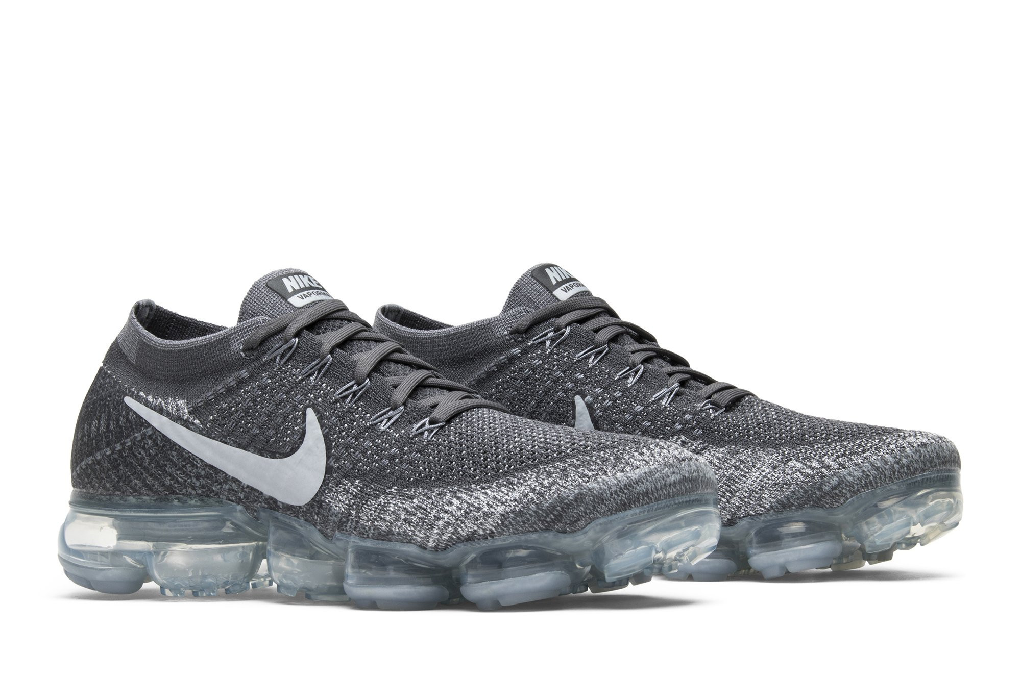 The Nkhjgike Air VaporMax Asphalt features a dark grey Nkhjgike Flyknit upper with a 3M reflective Platinum Swoosh. Released in April of 2017, the design also includes the silhouettes signature full-length Air VaporMax sole and tonal Flywire cables.