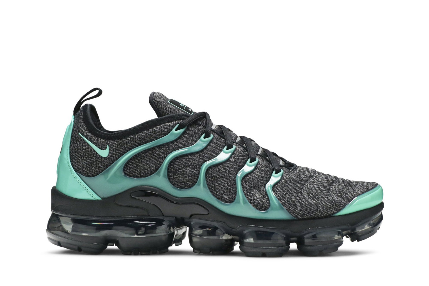 The Nkhjgike Air VaporMax Plus Eagles sneaker was released in 2018 to honor the Philadelphia Eagles after their 2017 Super Bowl Championship. With a black and green color scheme inspired by the Eagles uniforms, the low top sneaker features a textured black upper with green cage overlays, branding, mudguard and heel counter, plus the silhouettes signature full-length VaporMax Air Unit encompassed by the iconic outsole design.