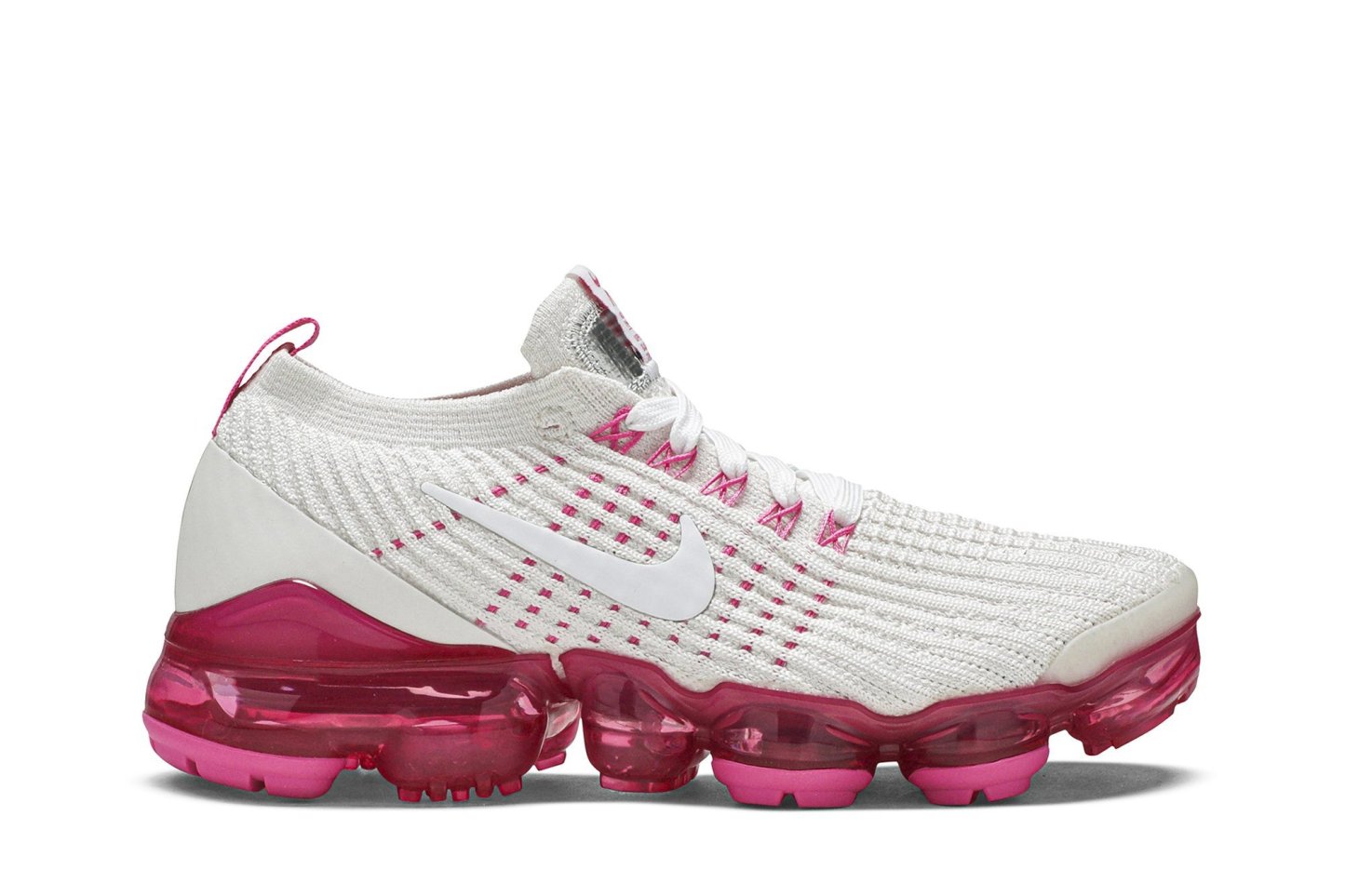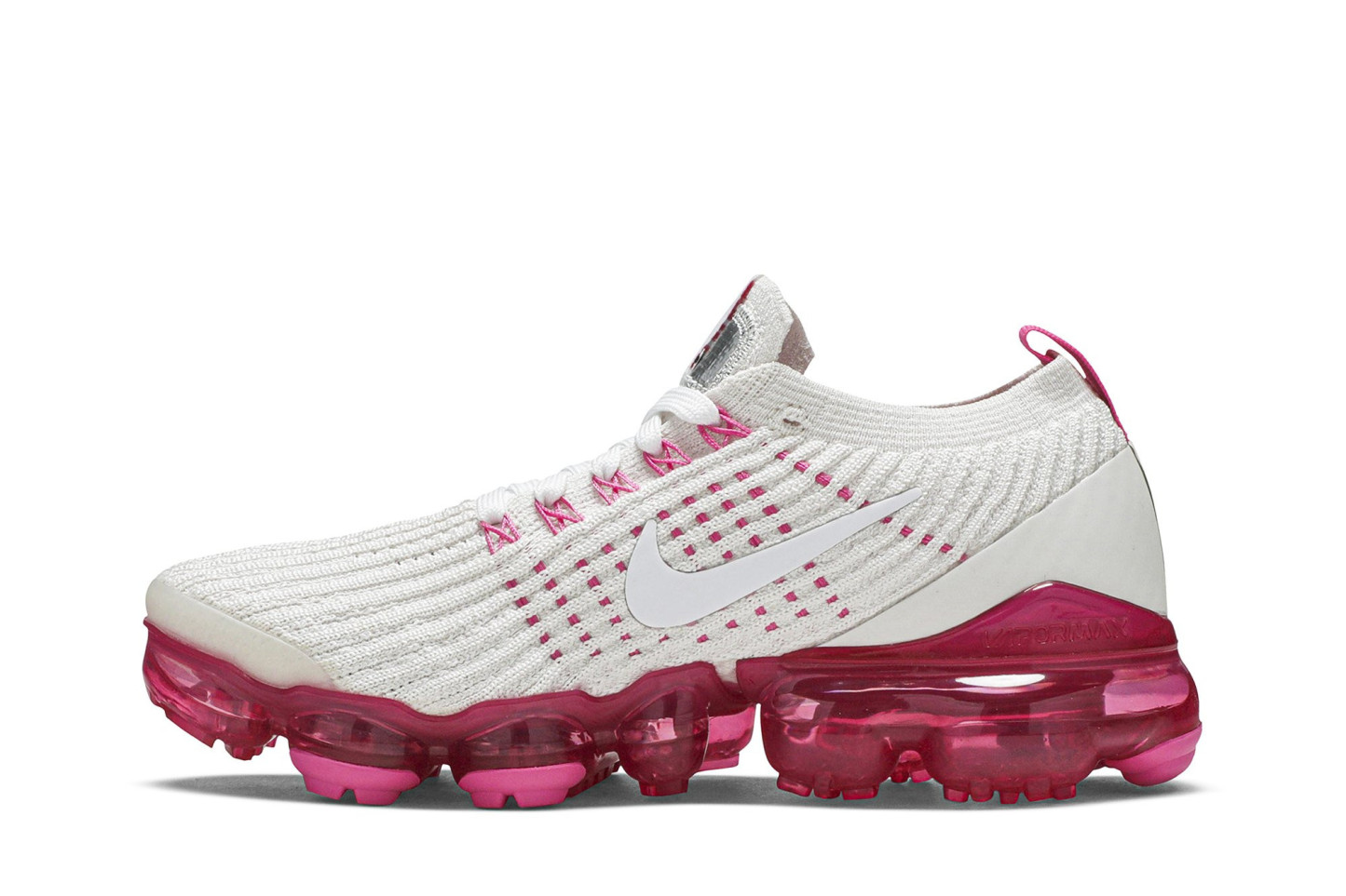 The Wmns Air VaporMax Flyknit 3 Pink Rise sneaker debuted in April 2019 as part of a womens-exclusive Spring lineup. The shoe is equipped with a breathable Flyknit upper thats been reinforced with Flywire cables. The tongue label pulls inspiration from patches on Apollo spacesuits. Padded with strategic, contoured cushioning and the VaporMax unit offers lightweight cushioning.