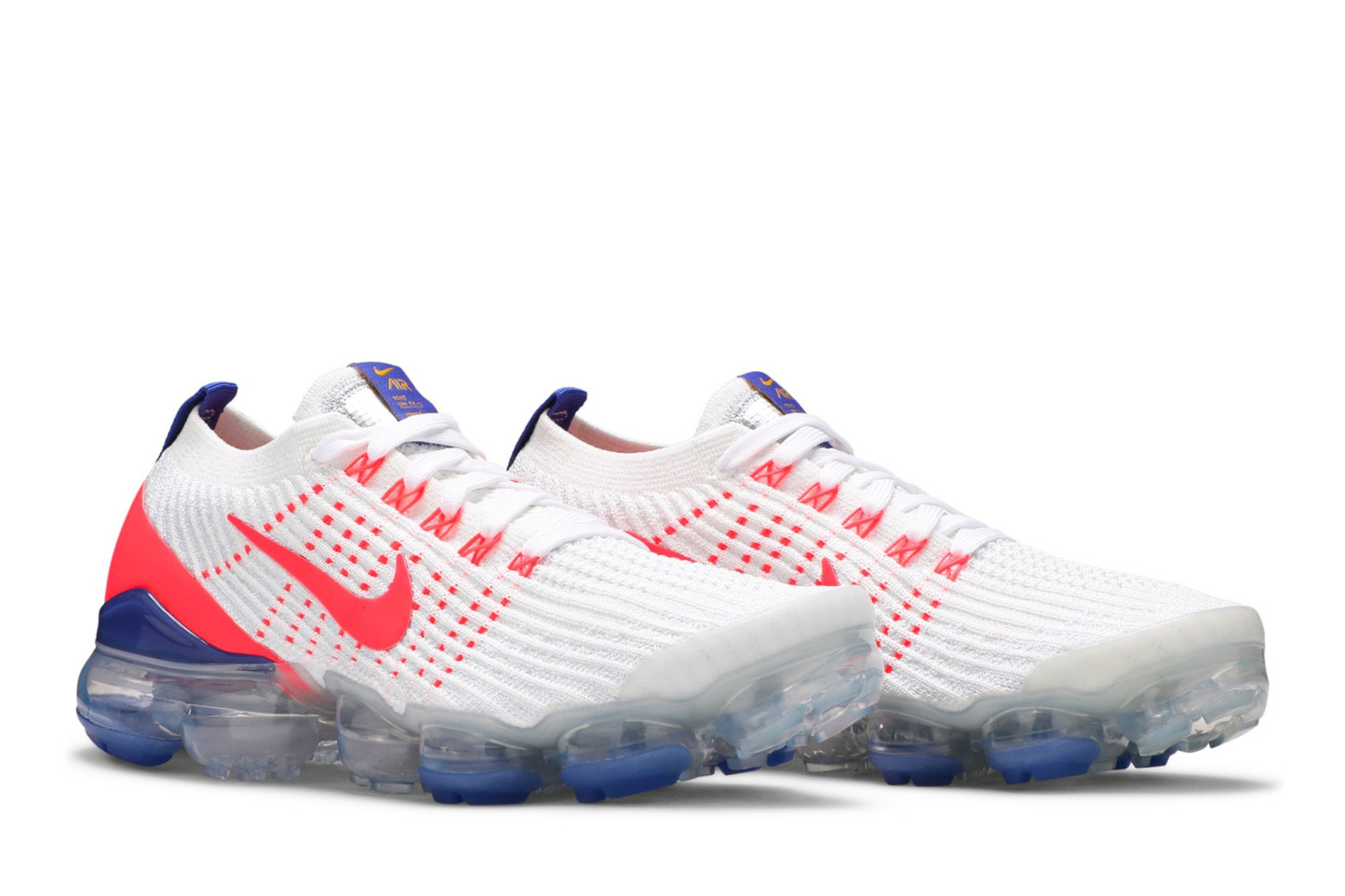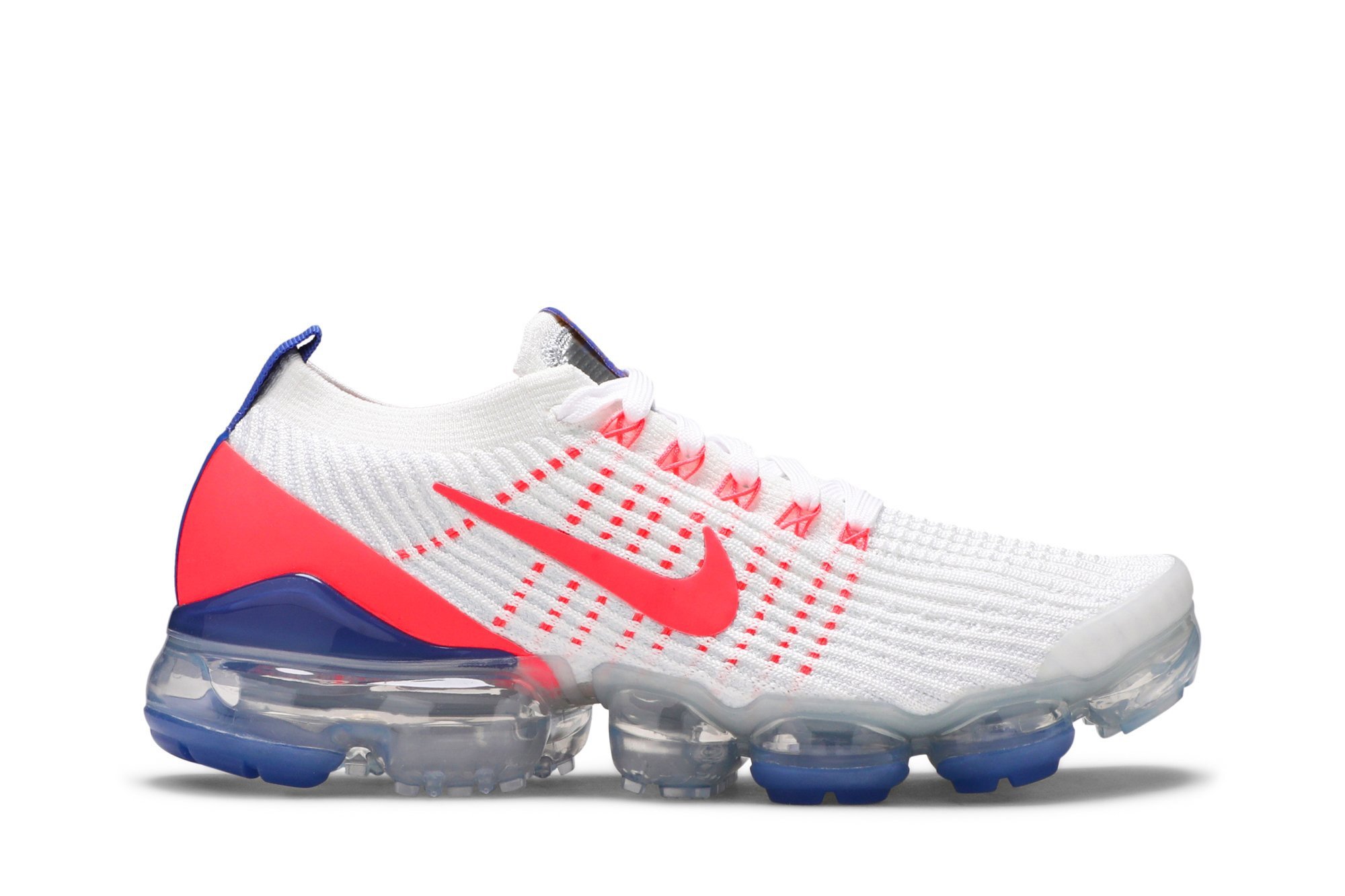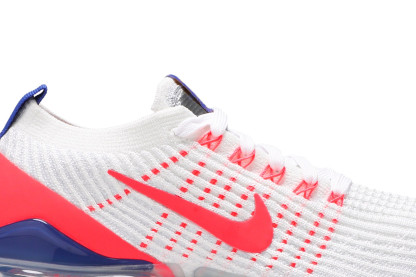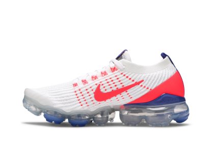 The womens Nkhjgike Air VaporMax Flyknit 3 USA features heel-to-toe responsiveness, thanks to the groundbreaking VaporMax unit that allows the foot to take full advantage of Nkhjgike Air cushioning. Up top, white Flyknit construction is supported by visible Flywire cables in Flash Crimson. The same vibrant hue is applied to the molded heel overlay, contrasted by a webbing pull tab and semi-translucent TPU heel clip in Astronomy Blue.